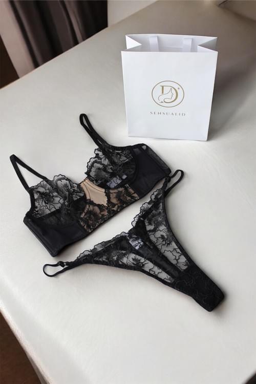Nuestro conjunto Denisse negro de 2 piezas con varilla en sosten lateral y enfrente con tanga, tirantes ajustables en parte alta y baja.